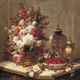 Vase of Flowers and Fruit on a Draped Table - Burghardt, Adam