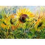 Cottage Sunflowers Teal - Vassileva Silvia
