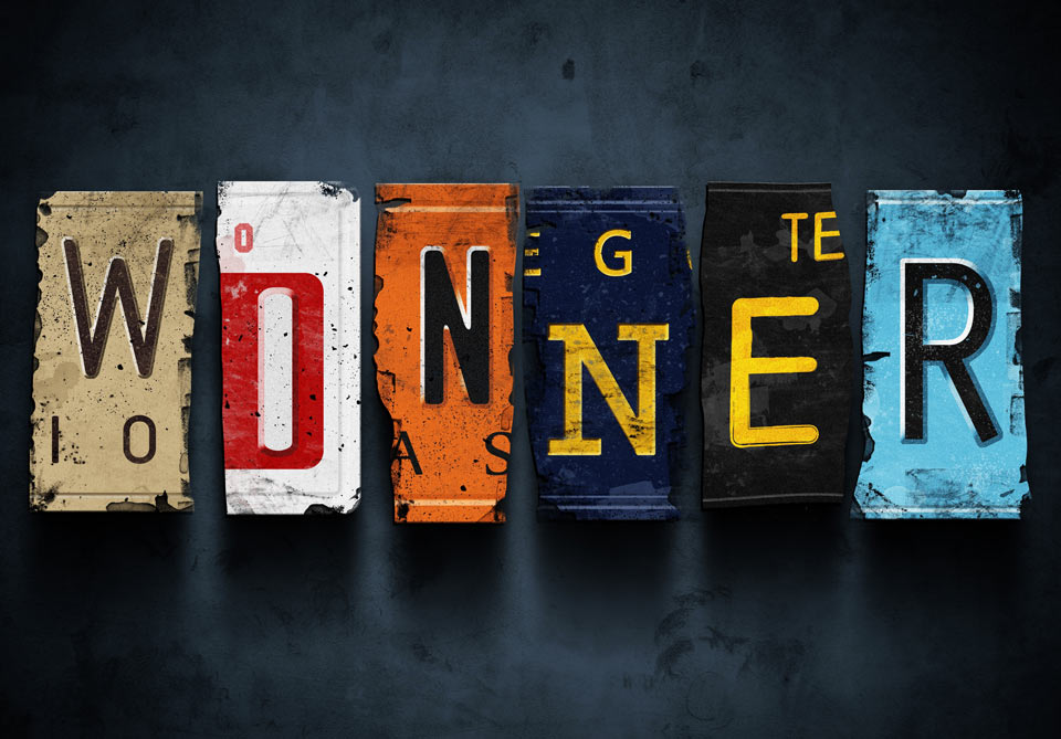 Η λέξη winner από πινακίδες αυτοκινήτων