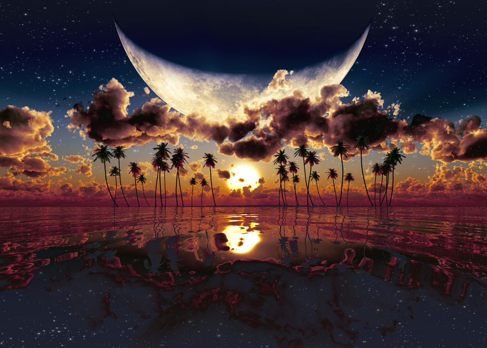 Μεγάλο φεγγάρι πάνω απο την δύση του ηλίου